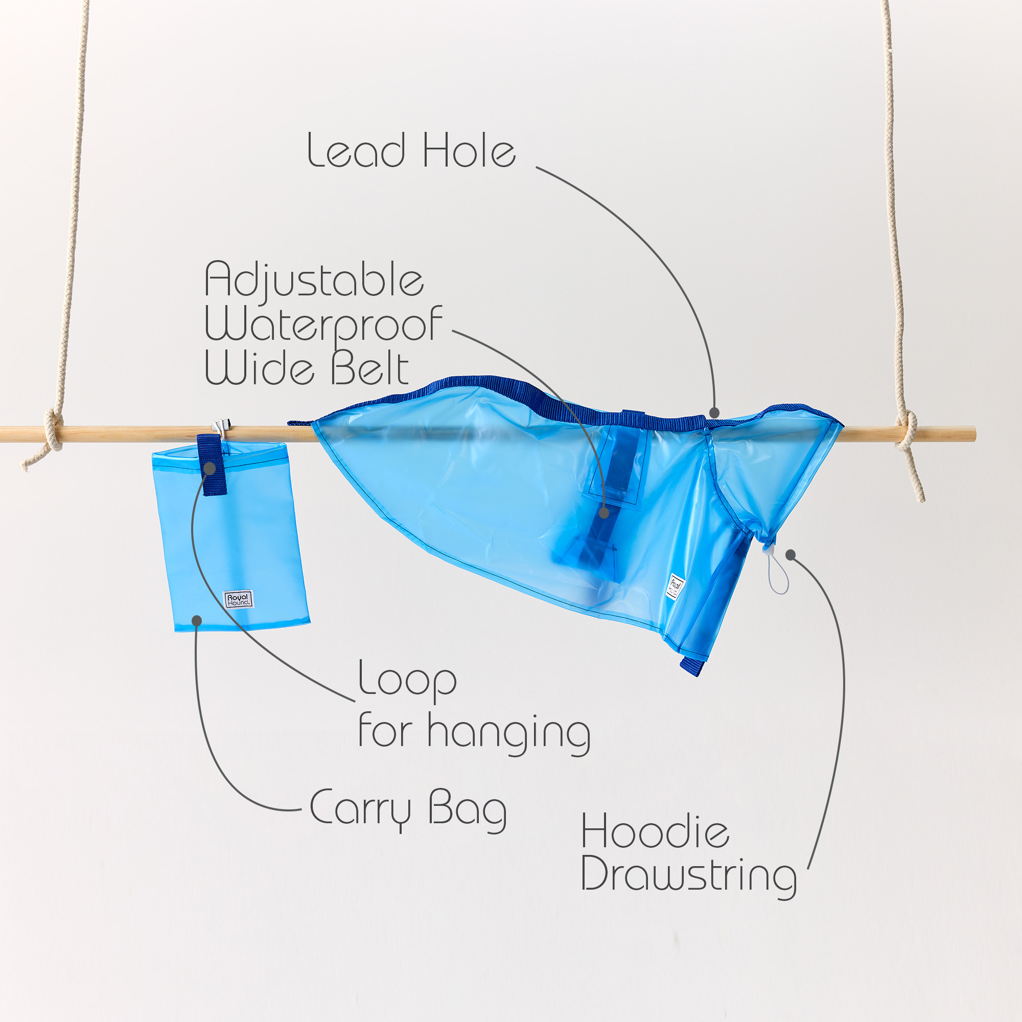 Introducing our exclusive semi-transparent raincoat with hoodie designed specifically for hounds, meticulously crafted for comfort and convenience. This innovative design includes an adjustable waterproof belt and a practical carry bag for easy portability. Made from TPU material, this hoodie offers 100% waterproof protection, ensuring your Italian Greyhound or Whippet stays dry even in heavy downpours. It features a lead hole for convenient walking and is designed to fit effortlessly over any Royal Hound suit (or any other brand suit), preserving the visibility of your hound’s stylish outfit. Don’t compromise on style while ensuring your beloved companion stays protected from the elements year-round with our premium Italian Greyhound clothing and Whippet clothing options.